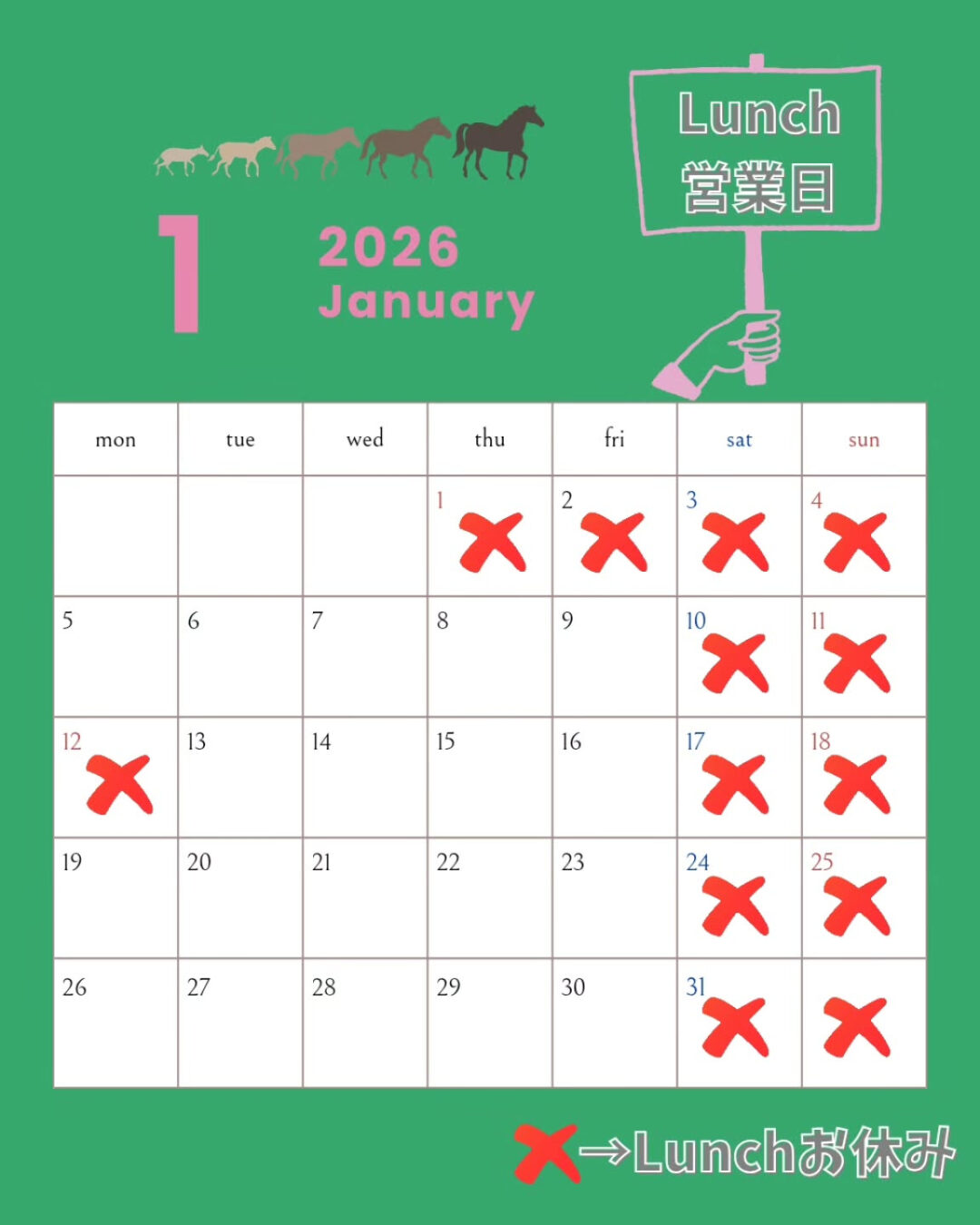 遅れましたが今月のLunch営業日カレンダー